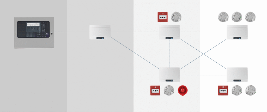 - Wireless devices communicating via translators back to the fire alarm control equipment